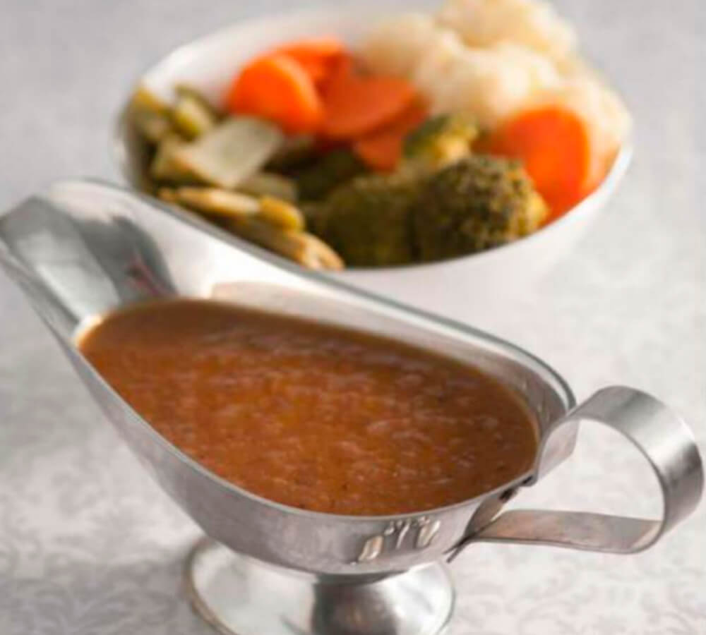 6. Sirva las verduras al vapor y la salsa de carne bien caliente, como acompañamiento.