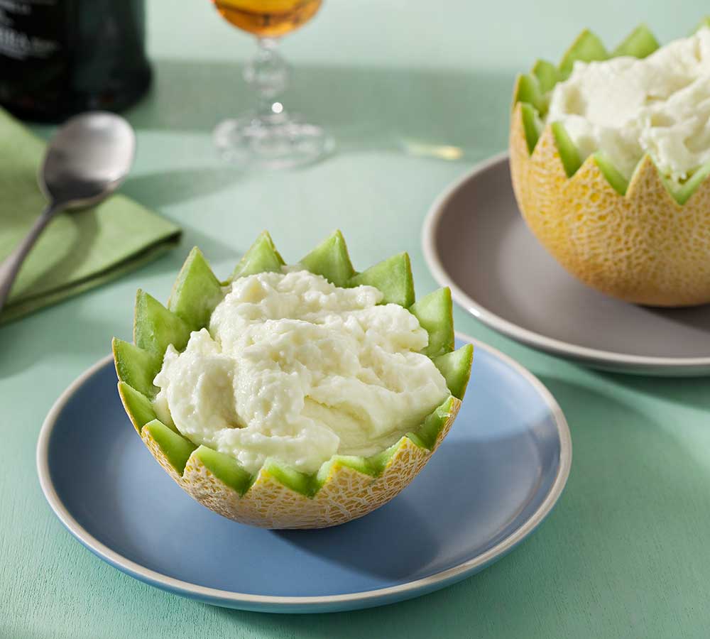 - - Sírvalo rellenando las mitades del melón con el sorbete. Consérvelo en el refrigerador hasta el momento de servir.