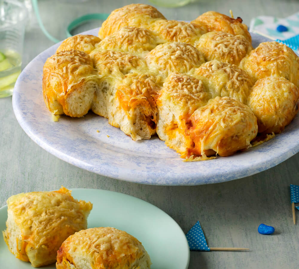 - Retire la masa del vaso, amásela sobre la superficie de trabajo y divídala en 18 trozos. Con la mano o con el uslero, aplaste uno de los trozos de masa hasta obtener un círculo de Ø 9-10 cm (mantenga los demás trozos tapados con un paño para que no se sequen). Ponga en el centro 1 cucharadita de tomate frito, espolvoree un poco de queso rallado y coloque 1 rodaja de pepperoni. Ciérrelo formando pliegues (repita el procedimiento con el resto de la masa) y coloque las bolas con los pliegues hacia abajo en el molde preparado, comenzando por el centro. Pincele las bolas de masa con el huevo batido y espolvoree con queso rallado.