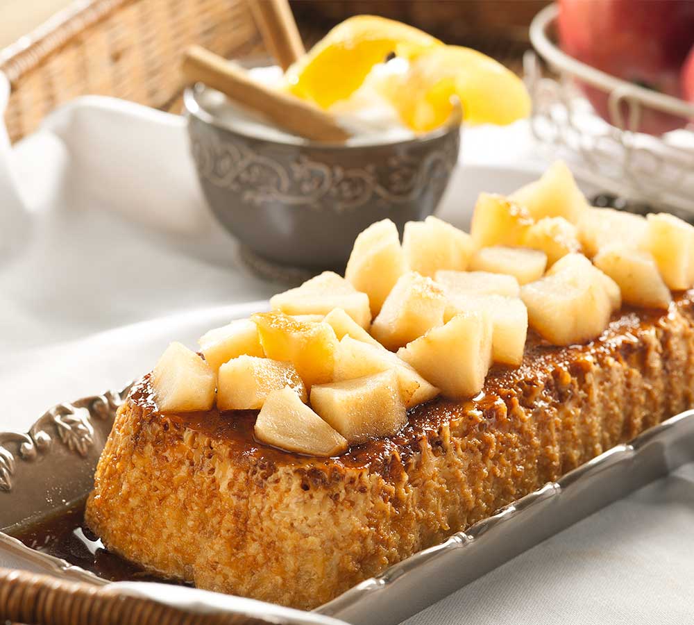 - Para decorar, puede hacer un papillote con una manzana cortada en gajos o dados espolvoreada de azúcar y con un trocito de mantequilla. Póngalo en el Varoma a uno de los lados del molde del flan y se cocerá al mismo tiempo