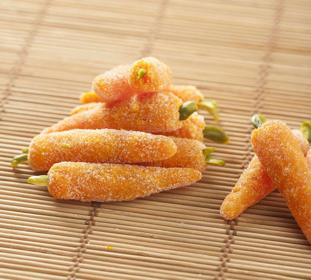 - Con dos cucharillas pequeñas, tome porciones de la mezcla, rebócelas en azúcar y deles forma de zanahoria. Deje enfriar y sirva.