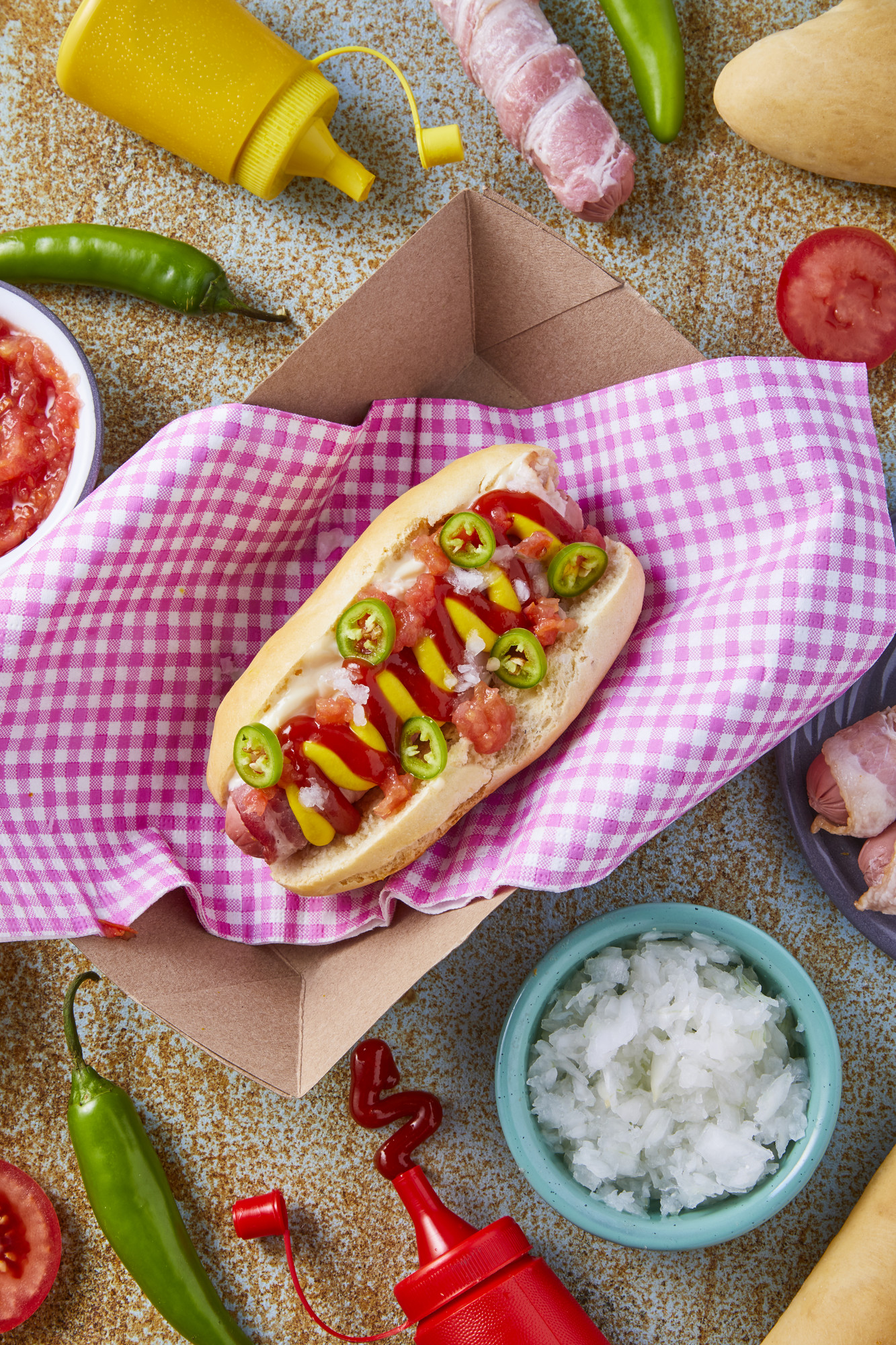 - Tome un trozo de masa, forme una bola y con ayuda de un rodillo estire para formar un rectángulo (10 x 14 cm). Enrolle un extremo (el más ancho) para formar cilindros, coloque sobre la bandeja para hornear de forma horizontal del lado derecho (para acomodar 7 cilindros de un lado y 7 cilindros del otro). Repita el proceso con el resto de la masa, cubra con un paño de cocina ligeramente húmedo y deje fermentar por 20 minutos.