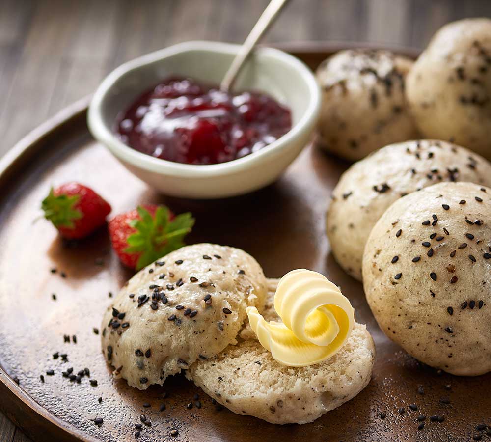 - Panecillos al vapor de tomate: antes del paso 2, añada 30 g de concentrado de tomate y 50 g de harina adicionales y mezcle 10 seg/vel 5. Proceda como indica la receta en el paso 2 omitiendo las semillas de sésamo.
