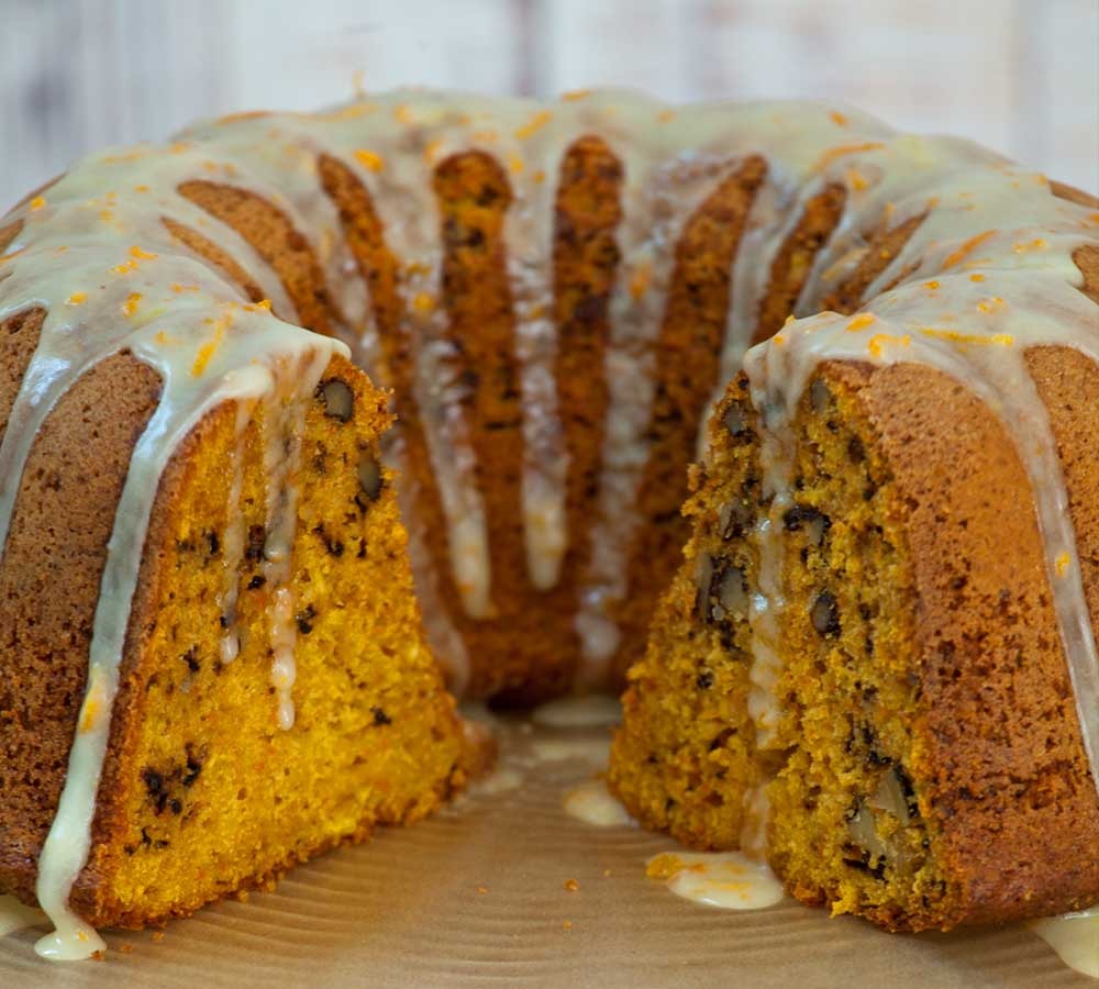 - Vierta la mezcla del vaso en el molde reservado. Hornee durante 60 minutos (180ºC). Retire del horno y deje enfriar en el molde durante 1 hora antes de desmoldar y servir