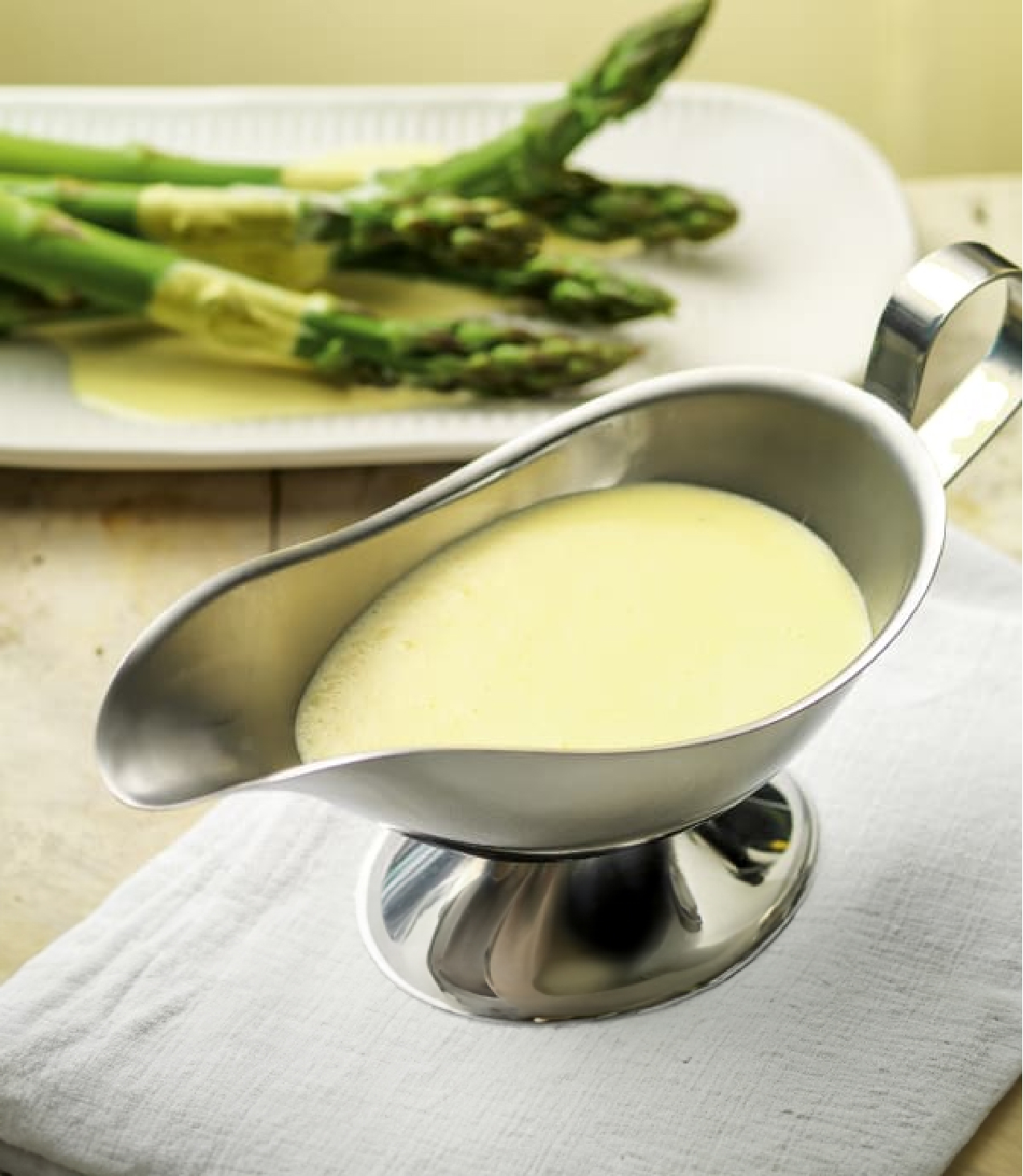 - Sirva la salsa holandesa con verduras (espárragos verdes, papas de ración) y pescados al vapor. Prepare el plato al vapor primero, después prepare la salsa y sirva caliente.